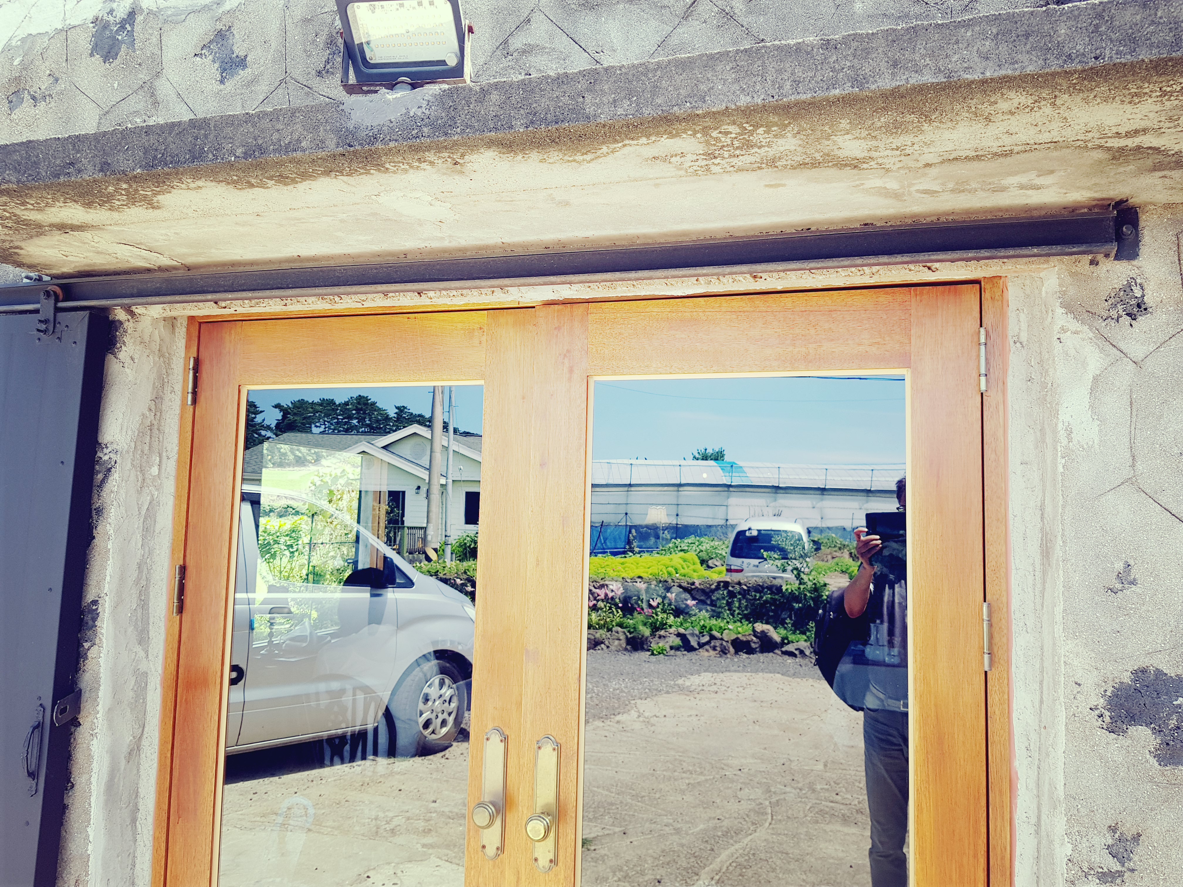 아담한 가옥을 개조한 문을 열고